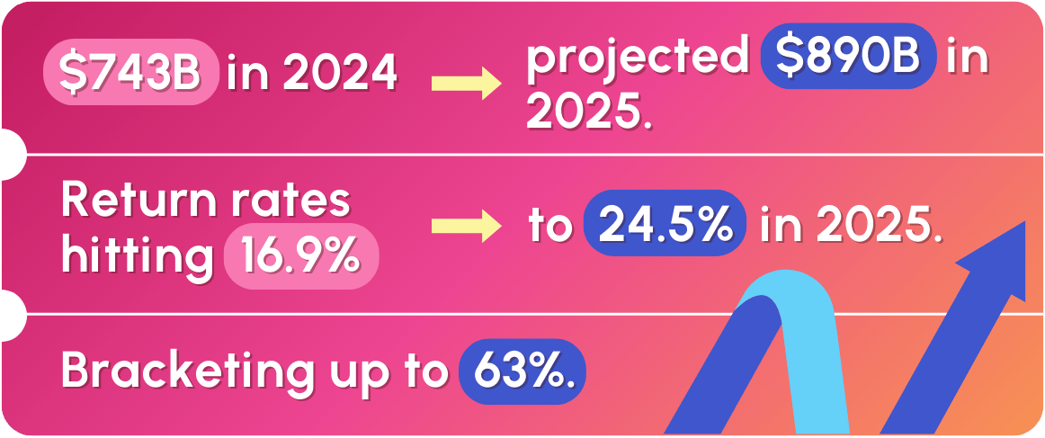 and returns are exploding (63% of U.S. shoppers openly admit to ordering multiple variations with the intent to return most of it. This was 58% the year prior.)