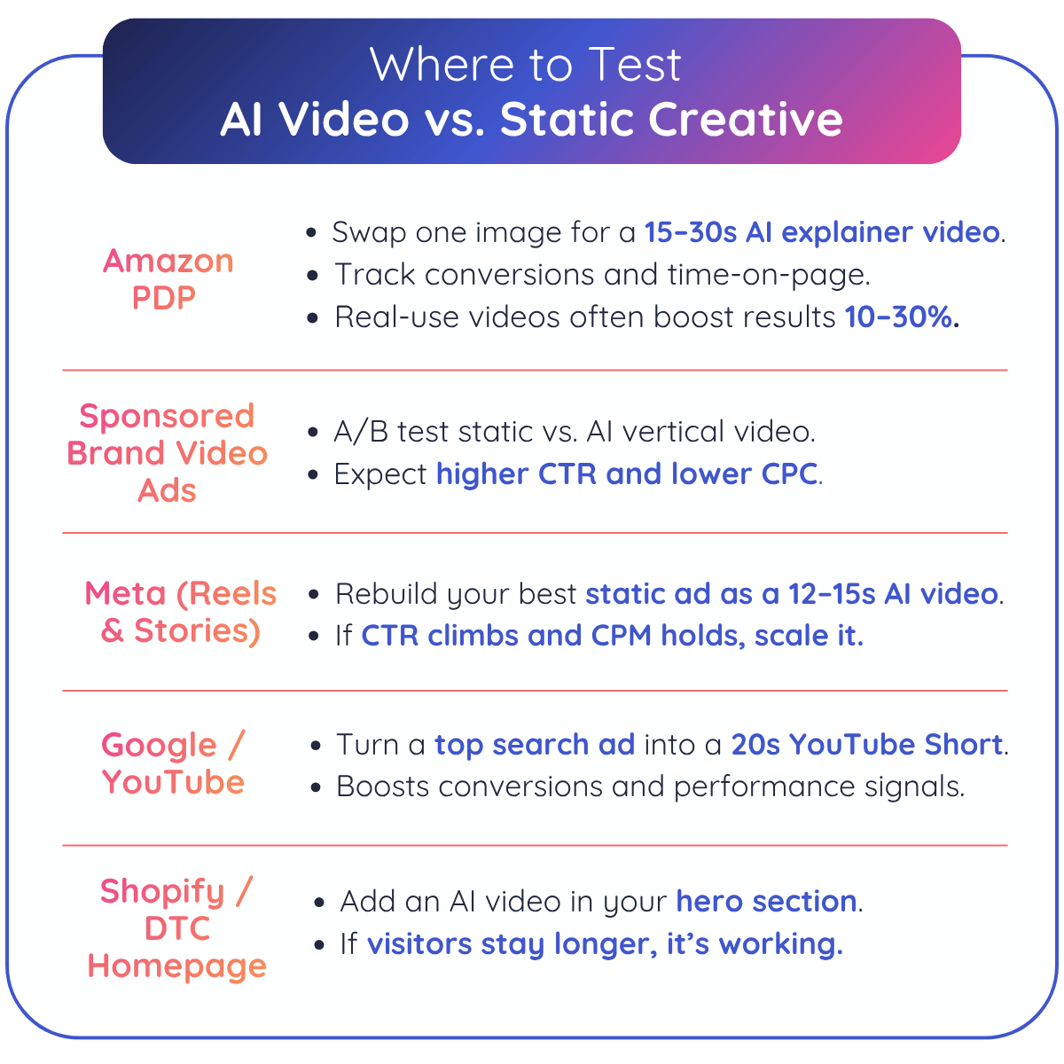 📈 Quick Wins: Where to Test AI Video vs. Static Creative