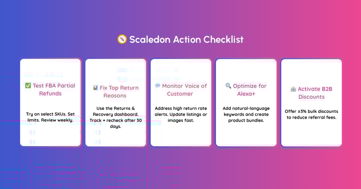 Stand up a Returns & Recovery report: top 3 reasons/ASIN, fix list, and a 30-day re-measure loop.